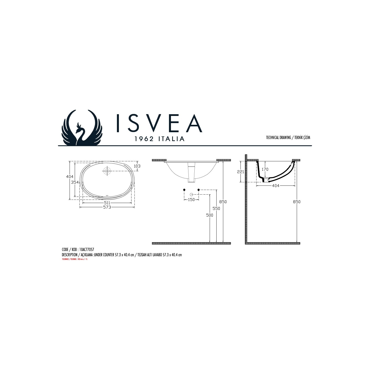 Isvea Soluzione Tezgahaltı Lavabo 57 cm